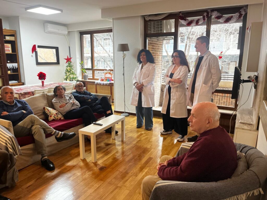 Al otro lado de la puerta se encuentran sus habitantes: Javier, Mario, Carlos, Agustina y Juan, que nos reciben con los brazos abiertos. Junto a ellos están Tania, Aitana, Yannik y Ana, que forman parte del equipo de la Asociación de Iniciativas Sociales (AISS), encargada de gestionar estos pisos desde hace aproximadamente 30 años.